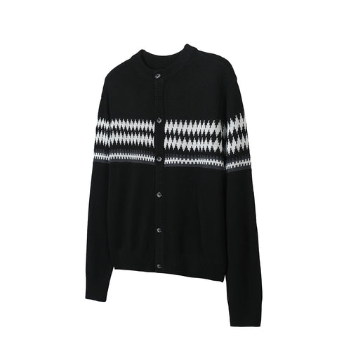 Jacquard striped wool sweater cardigan versatile loose long-sleeved top