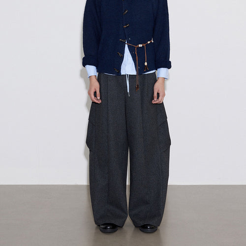 Pleated wide-leg pants, loose and straight silhouette, wool versatile trousers for men and women