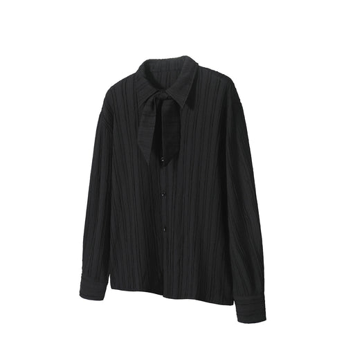 Bow tie cross shirt Tencel blend loose long-sleeved top