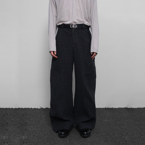 Wool plaid wide-leg pants Deconstructed split tailoring Straight-leg versatile trousers