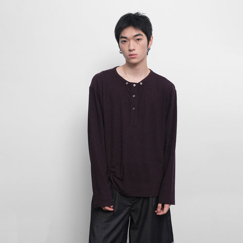 Mao Su V-neck badge shirt with patchwork collar and long sleeves