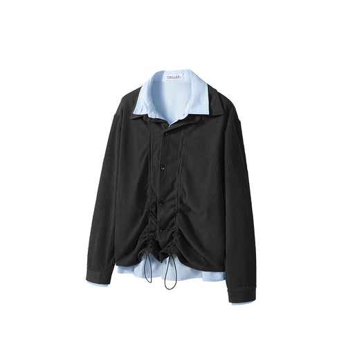 Layered Drawstring Shirt, Color Block, Loose-Fit Two-Color Top
