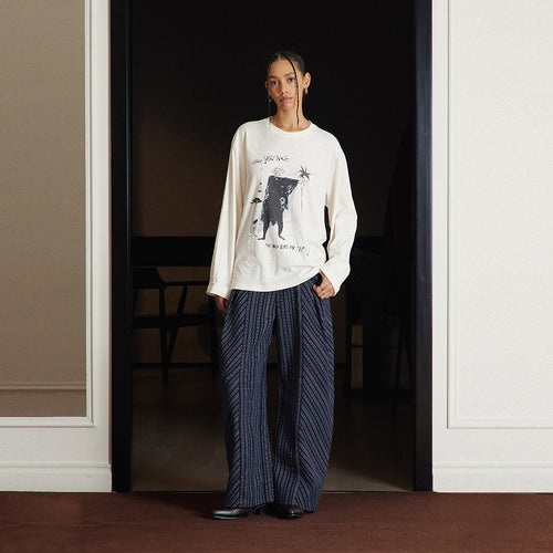 Jazz-Print Long-Sleeve Top, Loose Basic Base Layer, Unisex Crew-Neck T-Shirt