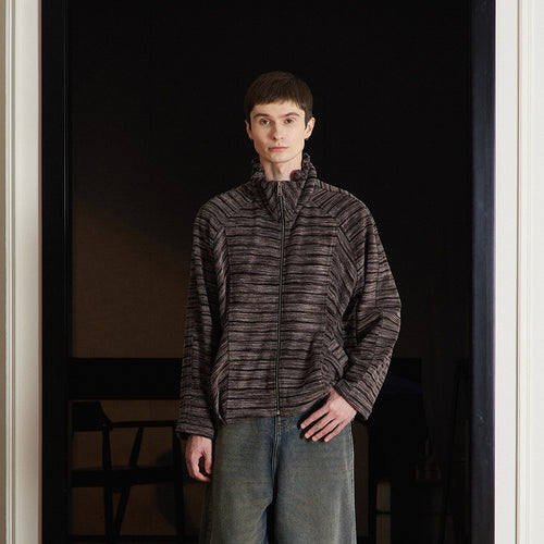 Striped Tailored Hoodie Jacket, Stand-Collar Drawstring-Adjustable Loose-Fit Top