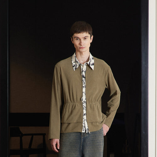 Jacquard Pleated Shirt, Contrast-Color Patchwork Versatile Slim-Fit Long-Sleeve Top (Unisex)